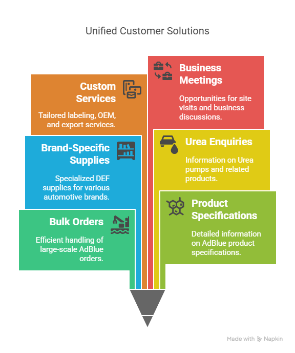 Brand-specific DEF supplies (Tata, Gulf, Cummins, Mahindra, HP, BharatBenz)