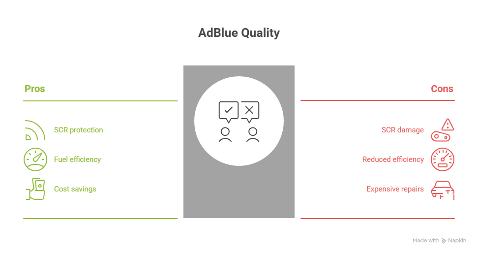 Using low-quality or contaminated AdBlue can damage your vehicle’s SCR system, reduce fuel efficiency, and lead to expensive repairs. Always use ISO 22241-compliant AdBlue like ours.