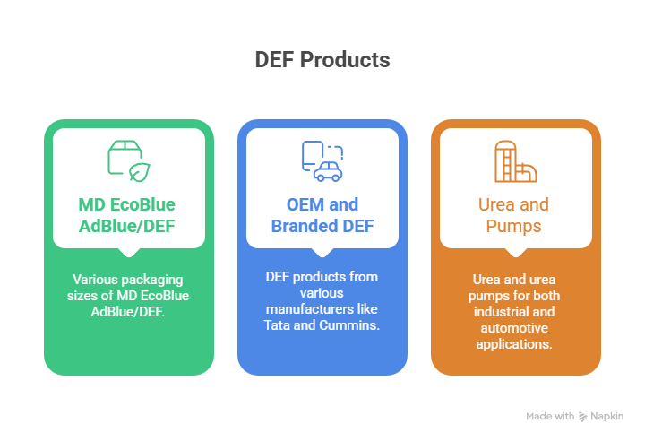 OEM and branded DEF from Tata, Gulf, Cummins, HP, Mahindra, BharatBenz