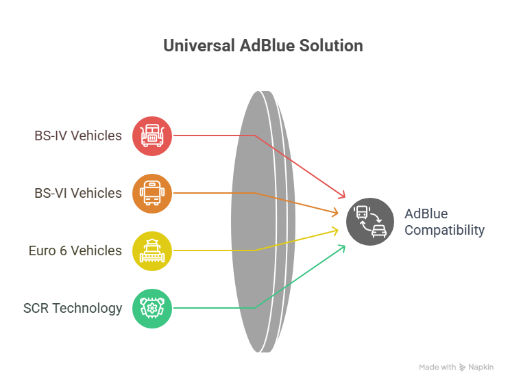 Yes. Our AdBlue is suitable for all BS-IV, BS-VI, and Euro 6 diesel vehicles using SCR technology, including trucks, buses, tractors, and commercial vehicles.